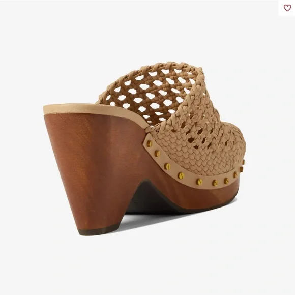 NWOT NEW without Box or Tags / Sold Out / Retail: $450Veronica Beard Hardie Woven Leather ClogsTake the look of any outfit to the next level with ease in the Veronica Beard® Hardie Color: SandClogs mulesSlide-on styleCovered top of footWoven design with latticed detailing on uppersGrommet details around platformsRound toe silhouetteChunky style solesWood designing all over solesLeather uppers, linings, and insolesSynthetic rubber outsolesImportedMeasurements:Heel Height: 3 1⁄2 inWeight: 1 lbPlatform Height: 1 in# rattan woven weave wicker basket shoe Anthropologie Swedish Hasbeens clogs clog tan taupe beige wooden heel boho bohemian hippie chic fp free people summer clog sandal sandals