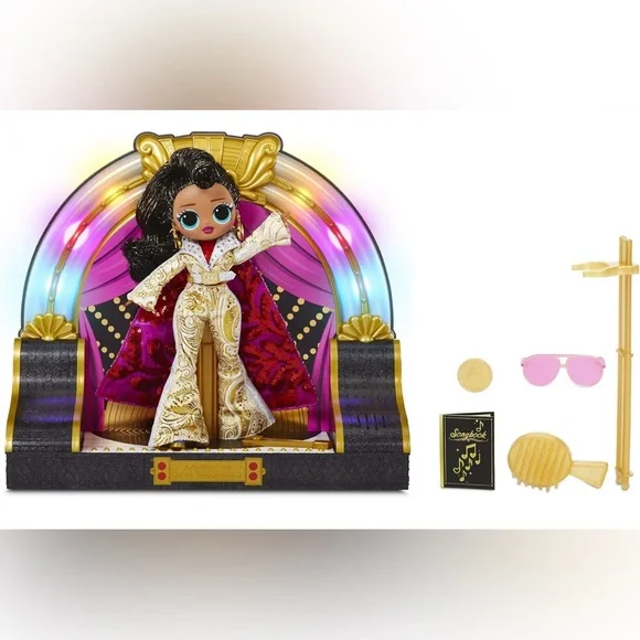 Introducing the 2020 L.O.L. Surprise! O.M.G. Remix Collector Edition Jukebox B.B. Fashion Doll. This 12-inch girl doll features wavy and straight black hair, big blue eyes, and a...