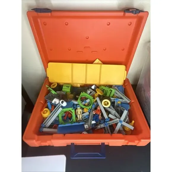 VINTAGE 1985 FISHER PRICE CONSTRUX CREATIVE BUILDING lot W/ 2 People Hard Case