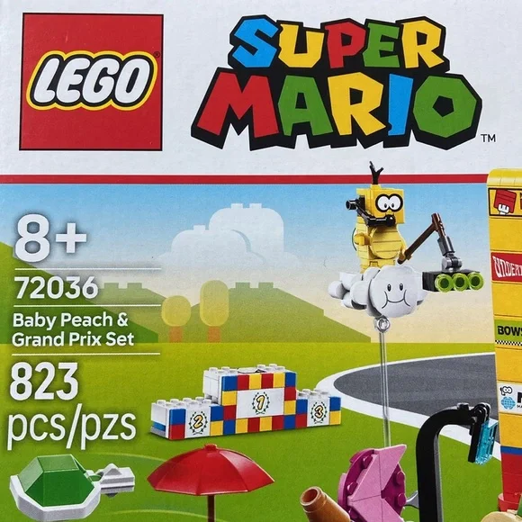 NIB - Super Mario Mariokart Baby Peach & Grand Prix Set - 72036- Size: 823 pcs - Ages: 8+ - Characters included: Baby Peach, Toad, Lakitu, and Lemmy- From a smoke free/ pet free...