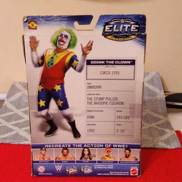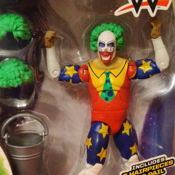 Doink the Clown, 2014, Mattel, series #34, box is lightly damaged creases and sticker pull on bottom, pics shown