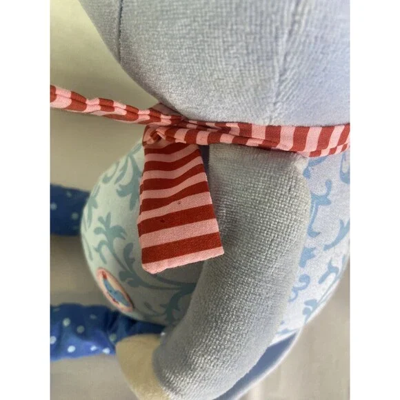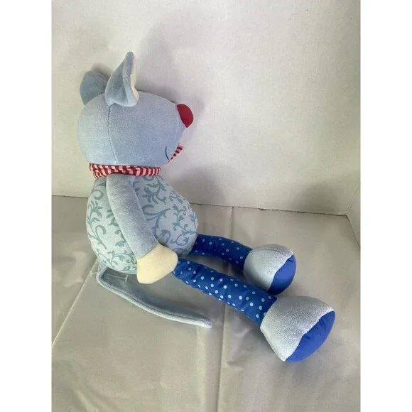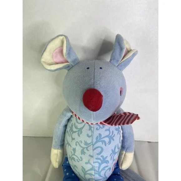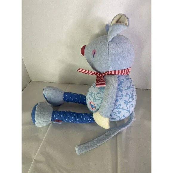 HABA Mouse Blue Plush Stuffed Animal Toy Red Striped Scarf Nose