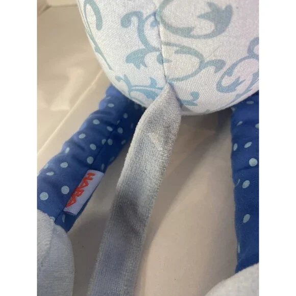 Up for grabs is a preowned HABA Mouse Blue Plush Stuffed Animal Toy Red Striped Scarf Nose. RARE and hard to find! There are a few discoloration marks noted and hang tags still attached shown in photos! SOLD AS IS! Measurements laying flat are included in photos. Please refer to all photos. Ask any questions prior to purchasing! Thanks!