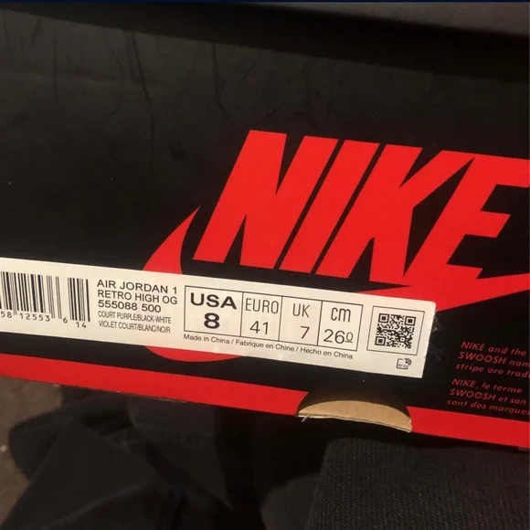 Air Jordan 1’s retro highs Purple and white Size 8
