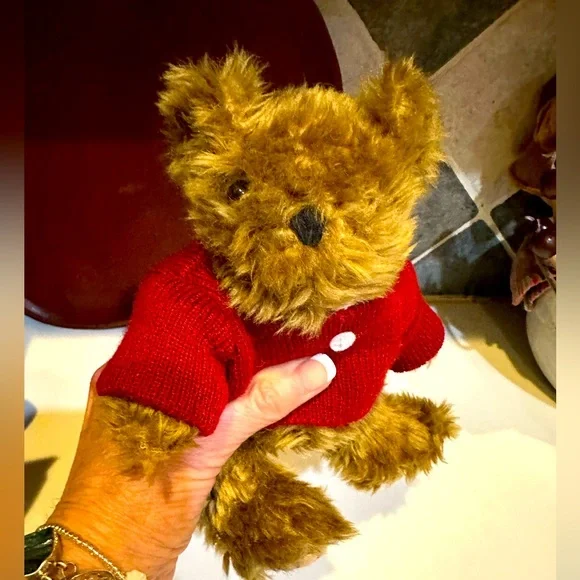 VTG LITTLE TEDDY LEFT BEHIND ANNE MANGAN STORYBOOK PLUSH BROWN RED SWEATER 8”RARE STORYBOOK CHARACTER PLUSH.Adorable brown teddy bear wearing a red sweater. Perfect for cuddling or as a gift.Plush Bear only—no book.SUPER RARE!SUPER CUTE!