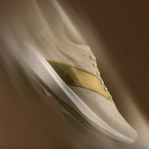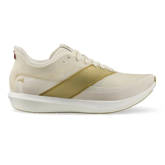 Brand new in Box!! Women´s size 8, men´s size 6.5. Color: Ivory/GoldUnbelievable quality of materials and build. Amazing fit, cushion, energy return and the beautiful sleek design of the Eliot Racer.Maximum energy return meets next-level cushioning in this carbon-plated women´s race day shoe, built to beat your personal best.