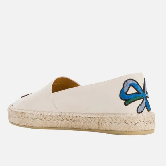 Excellent condition authentic luxury leather embroidered espadrilles. Off white leather color with colorful vines and flowers