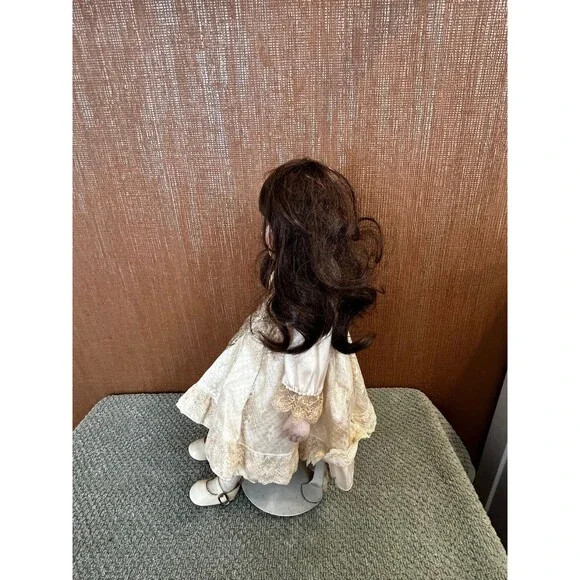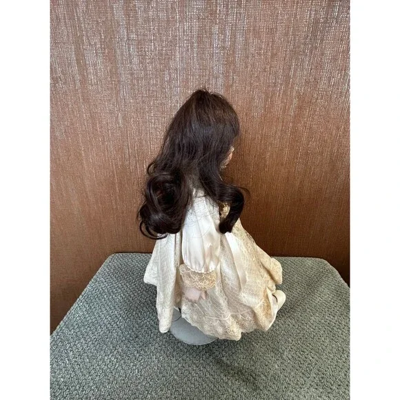 Embrace the charm of a bygone era with the 1985 Gorham Elizabeth Sugar & Spice Musical Porcelain Doll. Standing at 16 inches, this exquisite piece boasts delicate wavy dark brown...