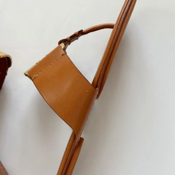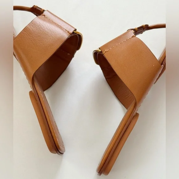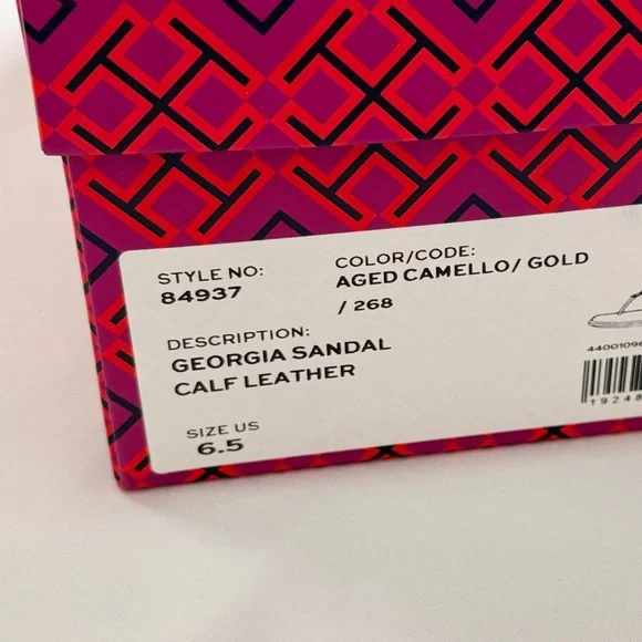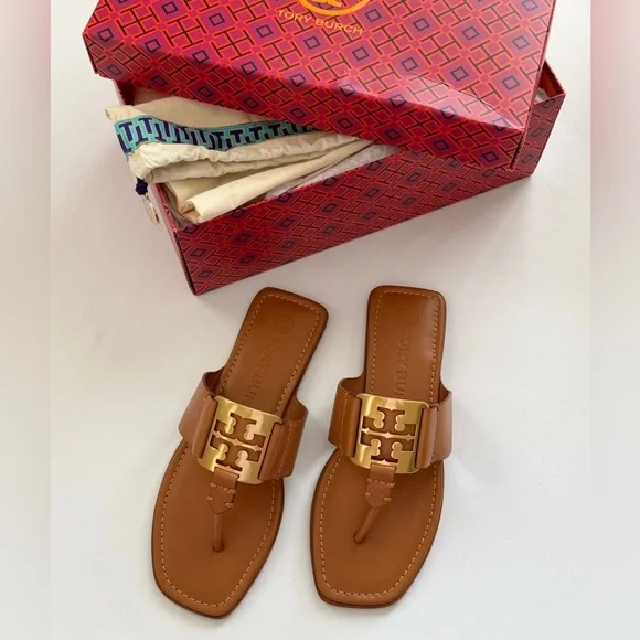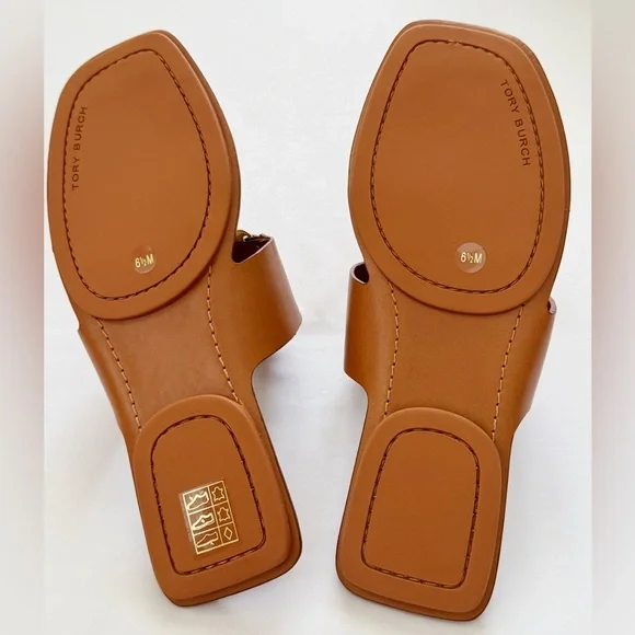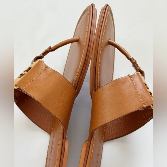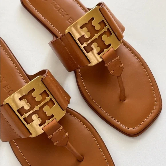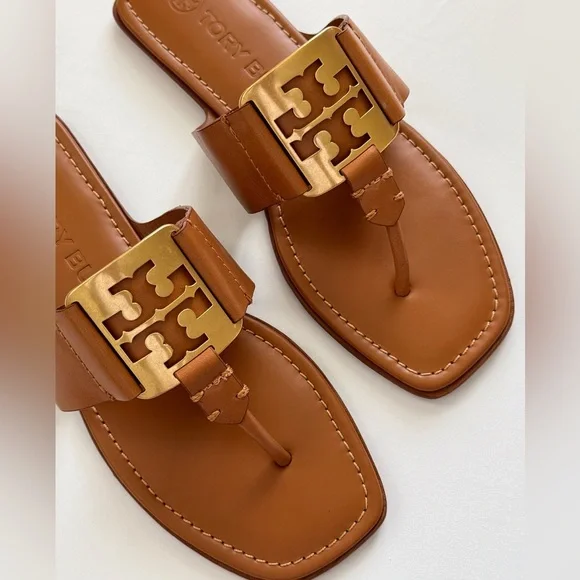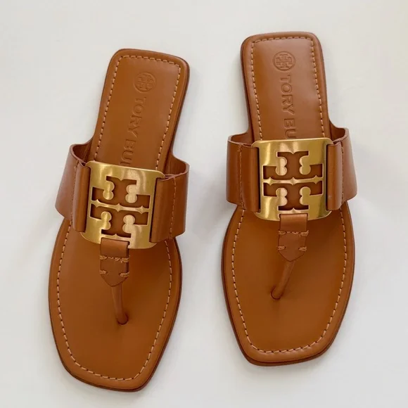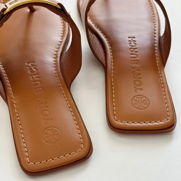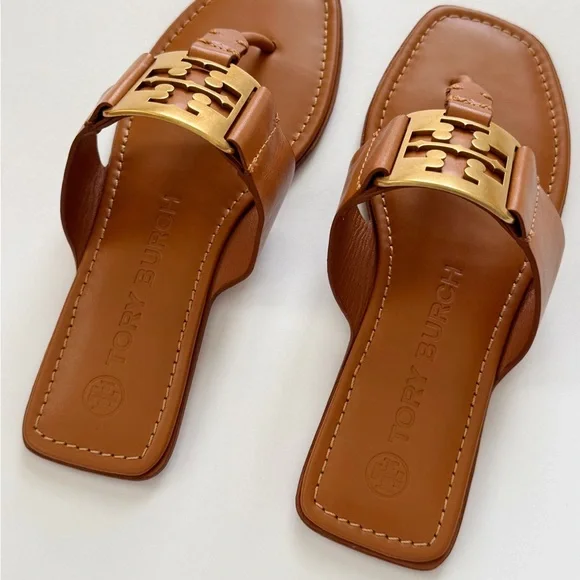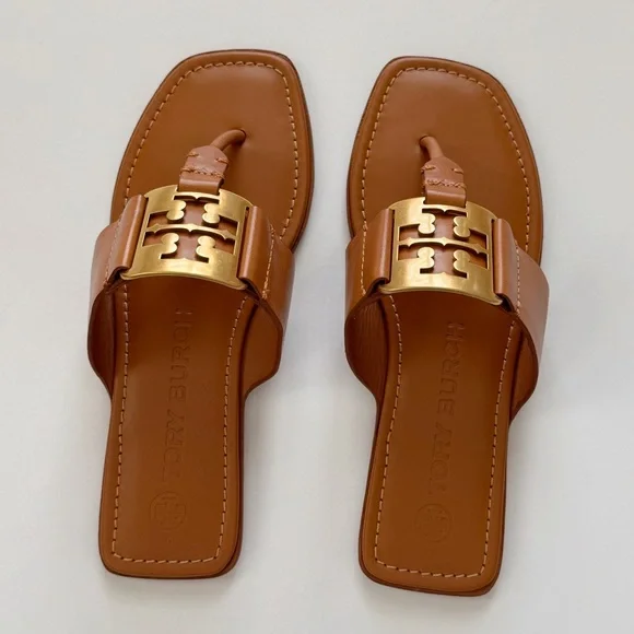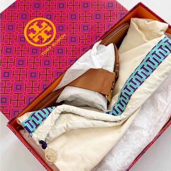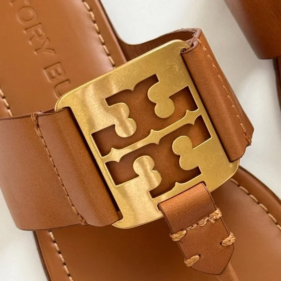 NWT Tory Burch Georgia Calf Leather Sandals, Aged Camello /Gold