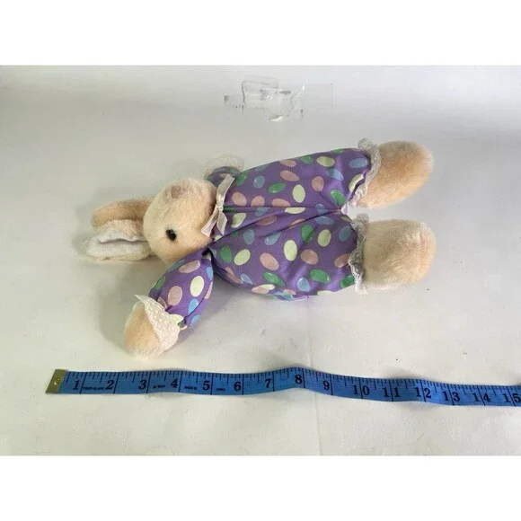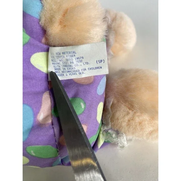 Up for grabs is a preowned Vintage TB Trading Easter Bunny Jelly Beans Eggs Plush Stuffed Animal Toy Lovey. Will come EXACTLY as shown! There are cosmetic flaws noted on the front and nose of the bunny as shown in photos! No holes or tears. SOLD AS IS! No other additional accessories or parts are included. Measurements laying flat are included in photos. Please refer to all photos. Ask any questions prior to purchasing! Thanks!