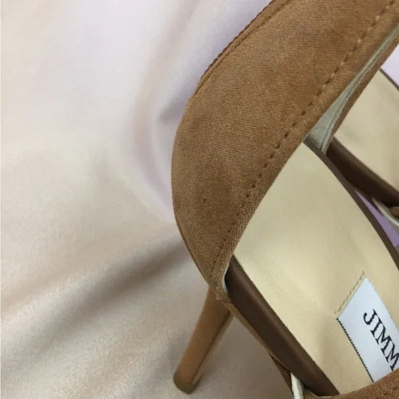 JIMMY CHOO Bubble Buckle Leathermix Sandals, Originally $925.00, Size 8 1/2, Excellent Condition, Includes Box & Dustbag, Tan Suede with Brown/White/Ivory/Silver Metallic Leather...