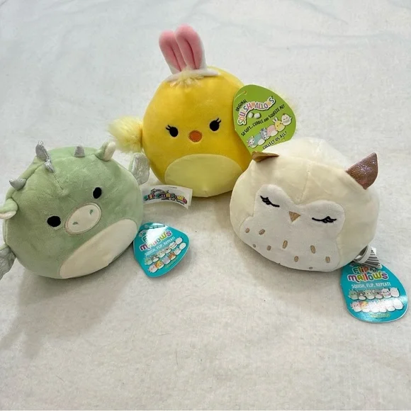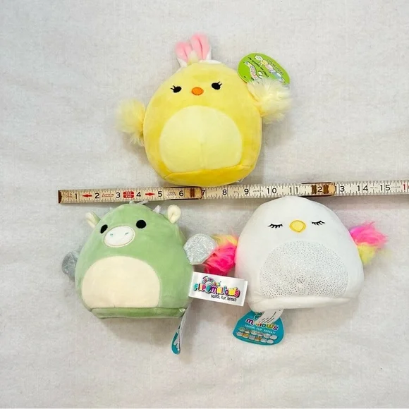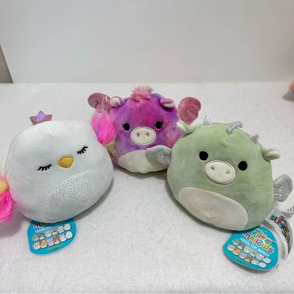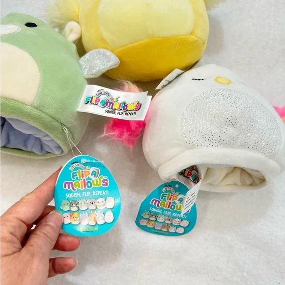 Bundle of 12 Squishmallows Flip-a-Mallows Vee & Sereno; Drew & Courtney; Dumbo, Deer​​ BeeNWT Squishmallows 5” Aimee, Flip-a-Mallows Vee & Sereno; Drew & Courtney Soft Plush, new with tags and character stories Without tags but in good condition—10” Disney Dumbo5” Willow Gray Deer Fawn Justice Collab 2019 5" Willow Pegasus and Kimberly Llama Flip A MallowAnd several others that I actually didn’t look at the names for All are in excellent condition Terrific squashmellow bundle to use as rewards/gifts for good grades, good behavior, perfect for surprises on road trips.