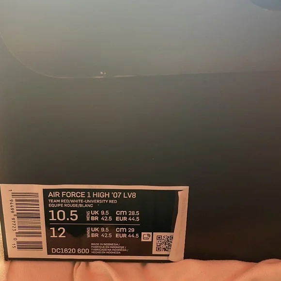 Air Force 1 high 07 LV8 red/white - university red size 10 1/2 in men like brand new still in box and has fit inside for the cold.