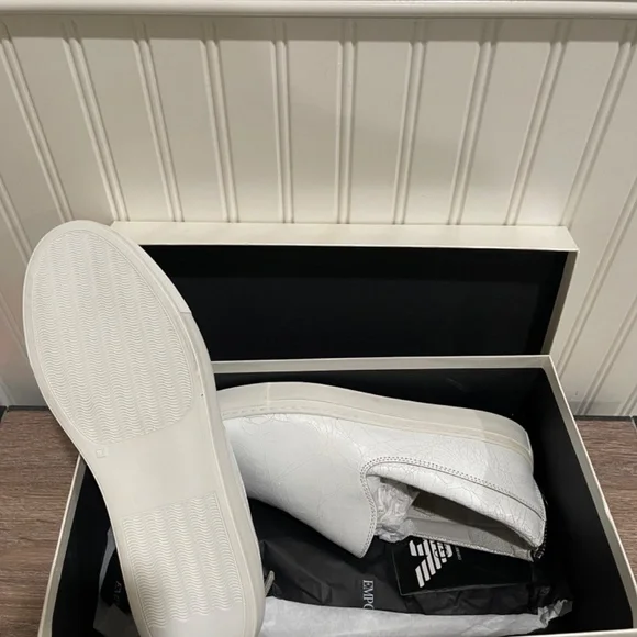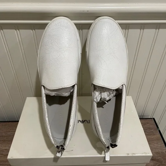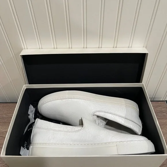 Zip slip-ons mens size 10 US white leather, unworn with certification
