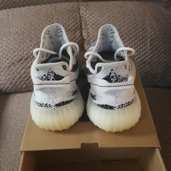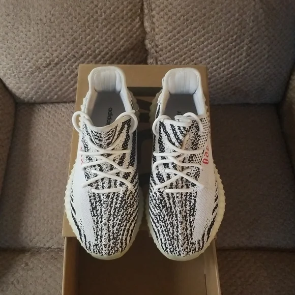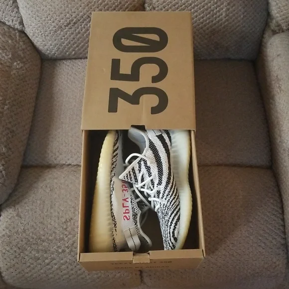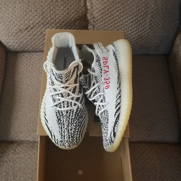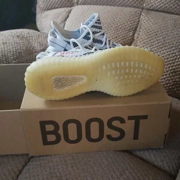 Got a fairly worn pair of Zebra Yeezy Boost 350 V2´s. They are a size 8 1/2, they feel super soft on the feet when the insoles are taken out. With the color of the shoe you can basically match it with anything. Like and share if you or anyone else is interested!