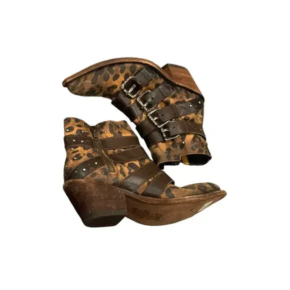 Liberty Black Amy Western Genuine Leather Ankle Boots Leopard Size 8Add some sassy energy into your closet with these buckled animal print boots! The perfect pair for your next...