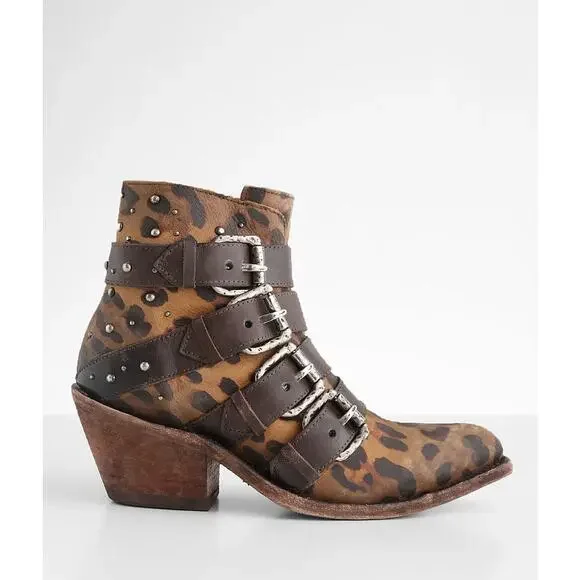 Liberty Black Amy Western Genuine Leather Ankle Boots Leopard Size 8Add some sassy energy into your closet with these buckled animal print boots! The perfect pair for your next concert.Distressed animal print cowboy bootieSide zip, adjustable buckle straps and stud detailsLightly cushioned footbedBottoms, Heels, Styling, Embossed, Suede, Stripe, Classic, Shafts, Leather, Sleek, Heel, Pleated, Mixed, Trendy, Preppy, Complementing, Sexy, Feminine, Chic, Day, Night, ComfortSeptember 24 Shoes