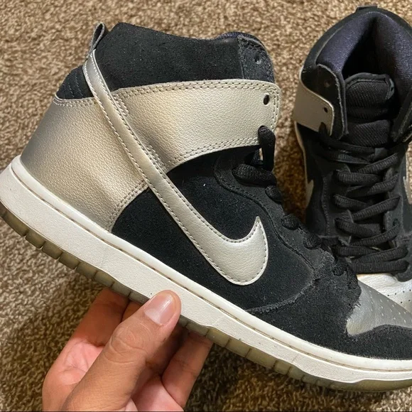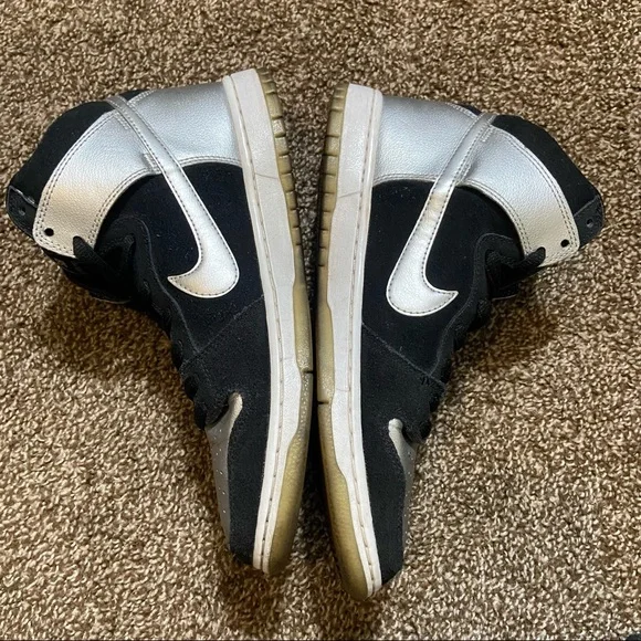 Pre Owned Used No BoxGood Condition Has Normal Wear Bottoms are yellow RARE DUNKS.Nike SB Dunk High Pro TIN MAN Black Metallic Silver 305050-023 Shadow RARE .Size 10 Men’s LOOK...