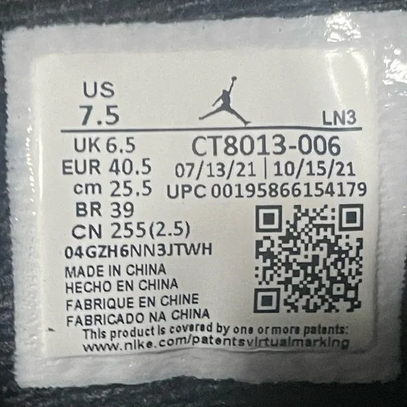 Black and white playoff 12 size 7.5