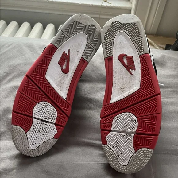 Jordan 4 Fire Red, these used to be my brothers but he went off to college, they are in pretty good condition with most of the wear on the bottom that could probably be wiped off. Hmu with offers.