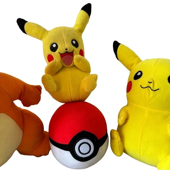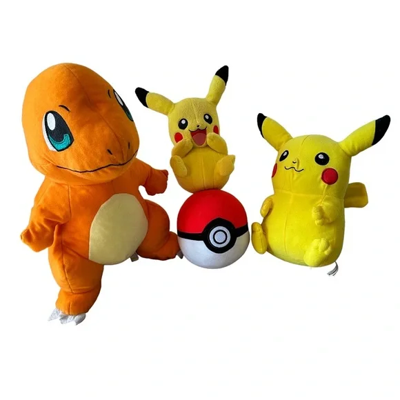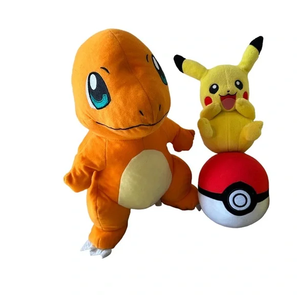 Pokémon Pikachu Charmander Pokeball Poke Ball Bundle Lot Set Stuffed Animals Includes 2 pikachu 1 pokeball 1 large charmander In good preowned condition- no stains - the pokeball needs to be sewn Smoke free pet friendly home