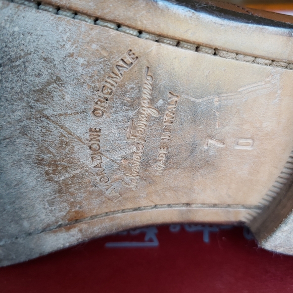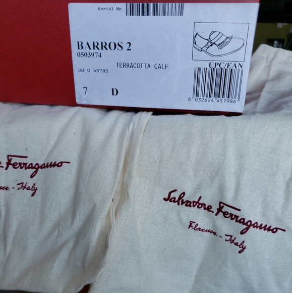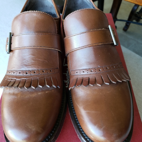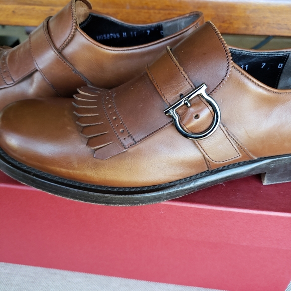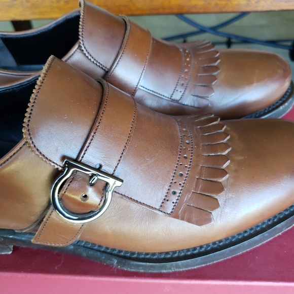 Salvatore Ferragamo Barros 2 terracotta calf loafers. Style is called shawl strap. Look at detailed pics in natural light. Good condition.No creases on toe box. Interior lining is in great condition. Minor wear on bottom. High quality shoes. Comes with original box and dust clothes.