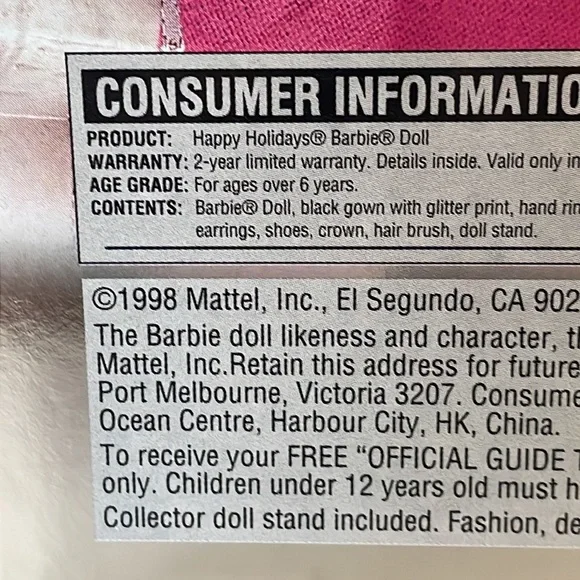 1998 Special Edition Happy Holidays Barbie NIBBarbie has not been out of her boxPlastic of box has several breaks no damage to Barbie ***See photos for best description and condition VintageFrankie082023