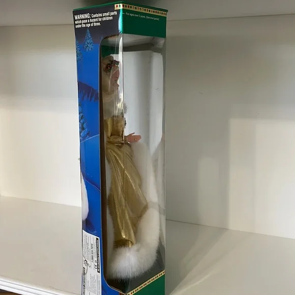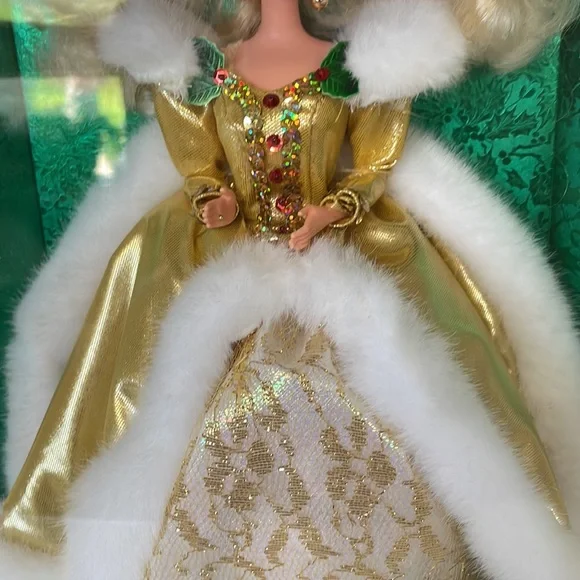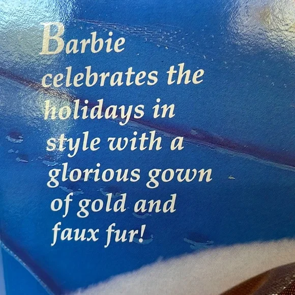 1994 Special Edition Happy Holidays Barbie Gown is gold and faux fur NIB
