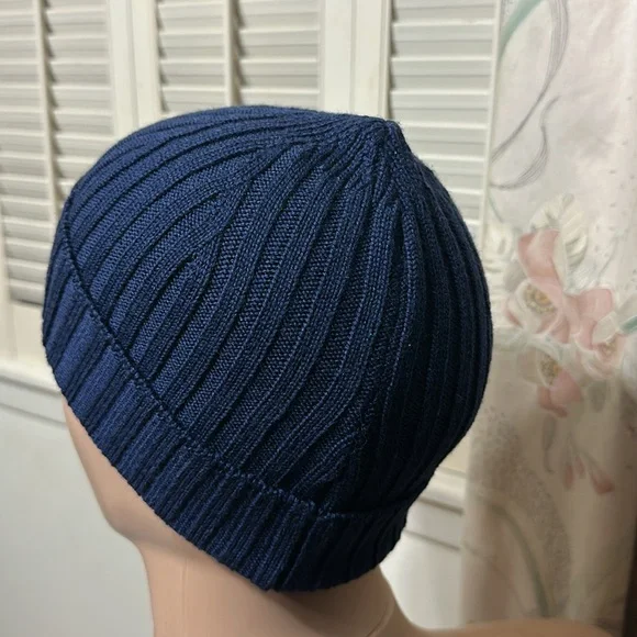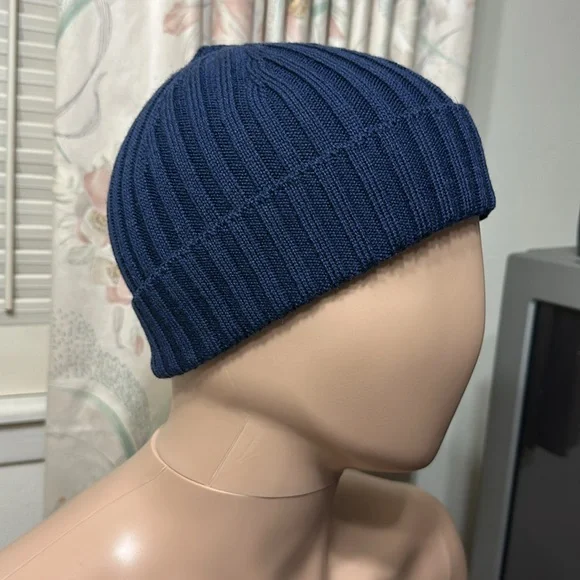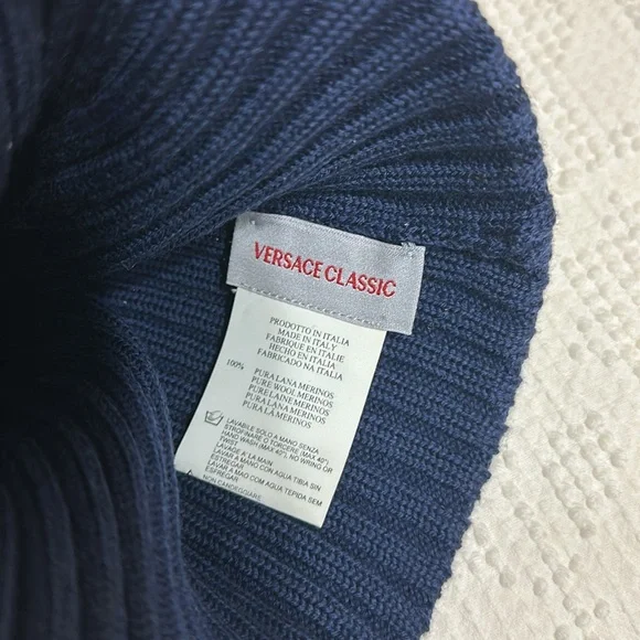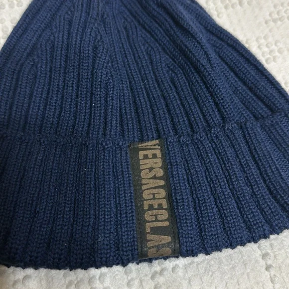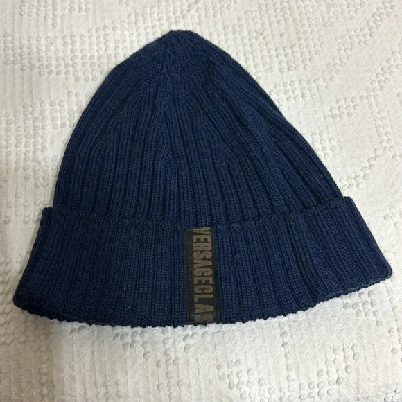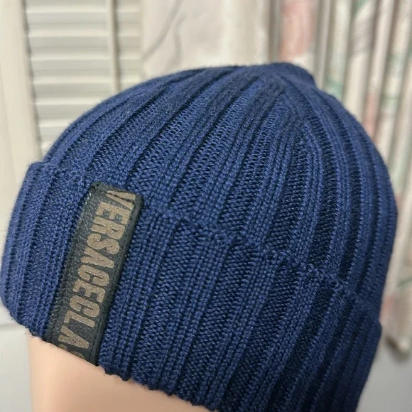 Versace classic navy blue beanie cap, one size fits all. 100% merino wool.