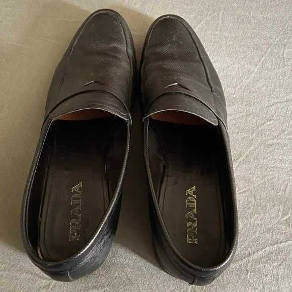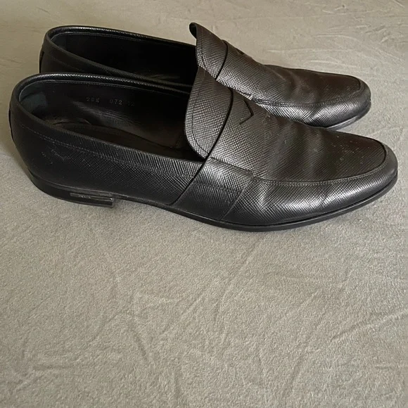 Black saffiano leather. Prada Mens Penny Loafers. Size 13. Gently used.