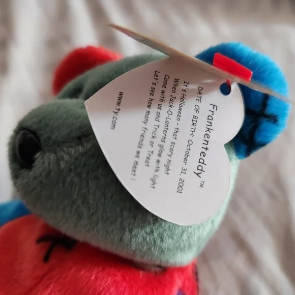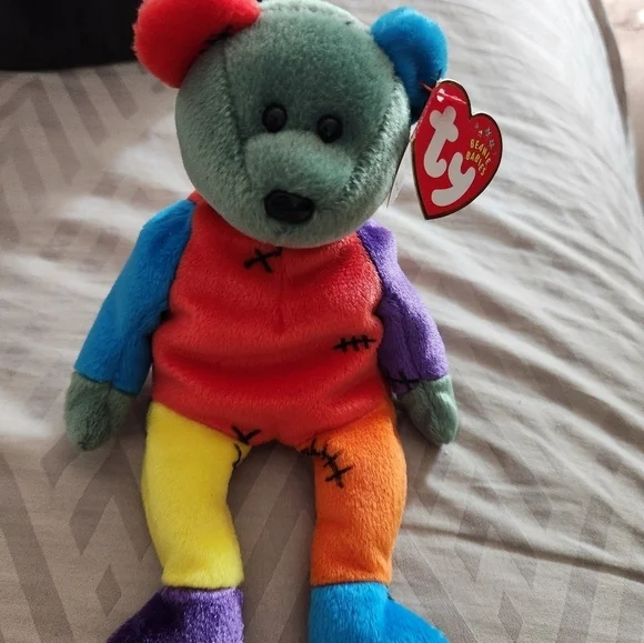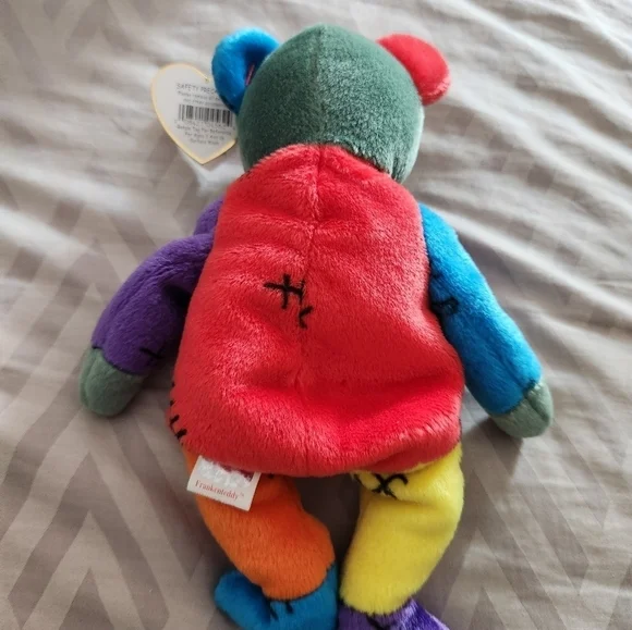 This is the Ty Beanie Baby 2002 Frankenteddy Teddy Bear.Is so cute.I love Rainbow colors and Stiches!! Too cute. These Bears are pre-owned, and designed for Halloween!! These are a collector quality items which have been stored in a dust and smoke free environment since new.An actual item pictured.No stock photos!You will receive this item aspictured.