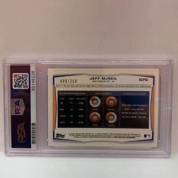 2014 Bowman Chrome Jeff McNeil Mets #BCP56 99/250 PSA 9 (MISC11)