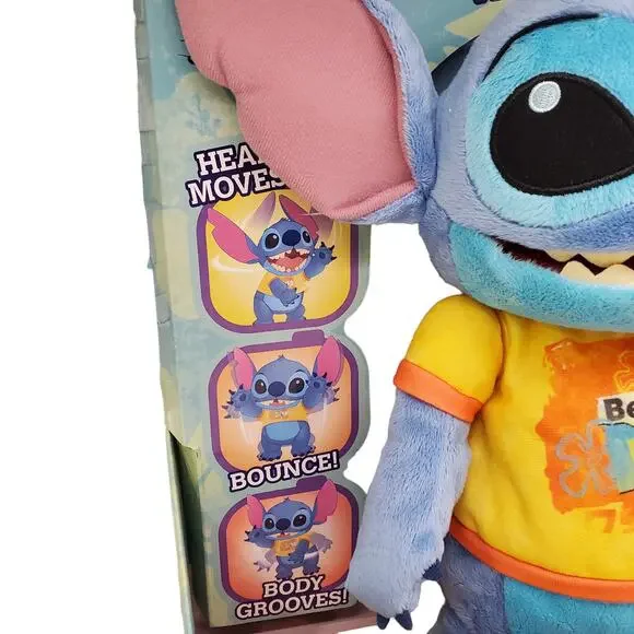 Disney Stitch Dance and Groove Stitch with Sounds Disney Lilo and StitchNEW and unopened!Size: 15 Inches TallPress his foot to activate music, dance moves, and Stitch sounds!...