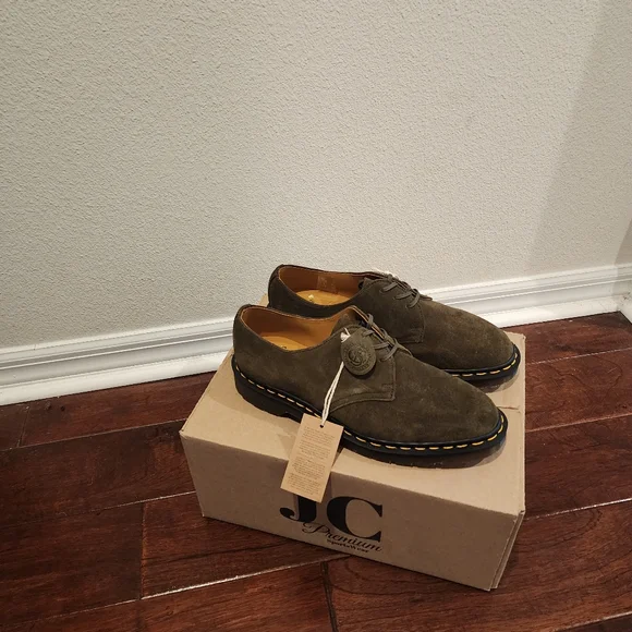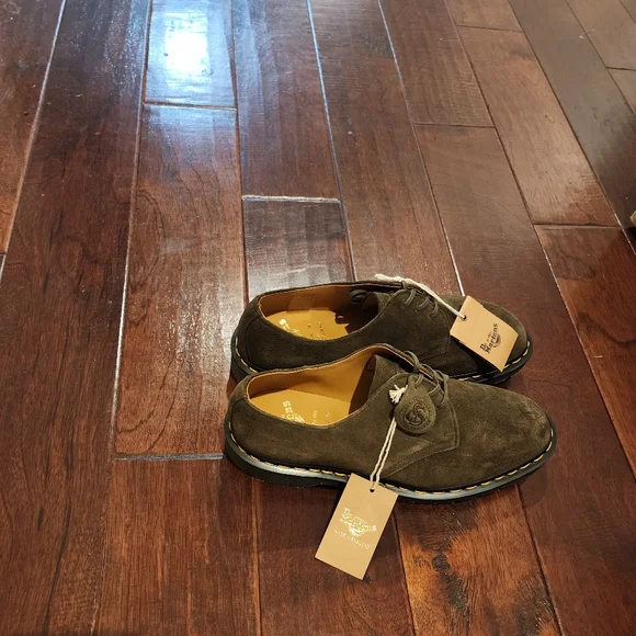 Men´s Dr. Martens 1461 MADE IN ENGLAND BUCK SUEDE OXFORD SHOESSize - 9Men - 9Women - 10NewHandcrafted in our original factory and constructed using a new leather from renowned Leeds tannery C. F. Stead. Buck suede is known for its bright, clean colors — a perfect canvas to show a new side of our 3-eye 1461 shoe. Welted on a classic DMS sole and detailed with blind eyelets and tonal waxed laces for a crisp and refined monochromatic profile. The Made in England shoes are finished with yellow welt stitching for a touch of distinctive DM’s DNA.All offers are welcomed.