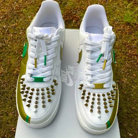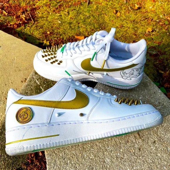 *THIS IS A CUSTOM*- 1 OF A KIND- IN BRAND NEW CONDITION - ORIGINAL BOX INCLUDED - NEVER BEEN WORN- PAINT WILL NOT FADE, CHIP OR WASH OFFSHOE FEATURES:- SOLE SHELDS (PROTECTS BOTTOMS) - METAL BRONZE/ WHITE SPIKES - CUSTOM PAINTED SHOLES/ BOTTOMS- CUSTOM PAINTED LACE TIPS- CUSTOM PAINTED LACE TAGS - SIGNATURE WAX SEAL- REFLECTIVE RHINO ANY QUESTIONS OR CONCERNS PLEASE FEEL FREE TO ASK. THANK YOU.