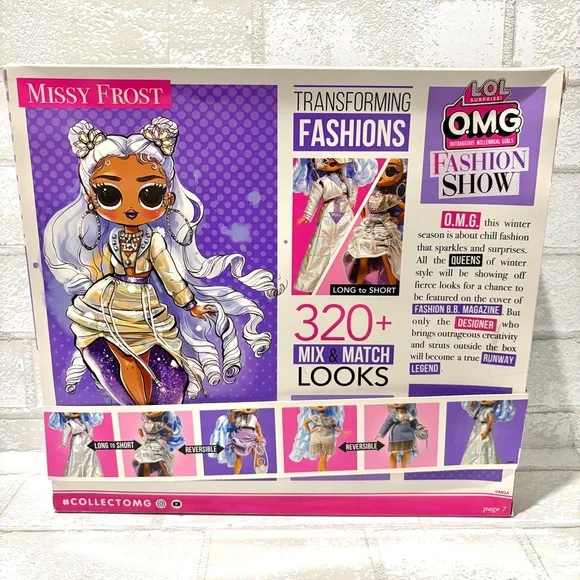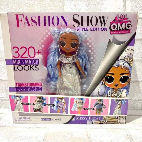 New in Box - LOL Surprise OMG Missy Frost Doll with blue hair and silver outfit. Style Edition with 320+ mix and match looks.Fashion show style edition Doll is approximately 10”...