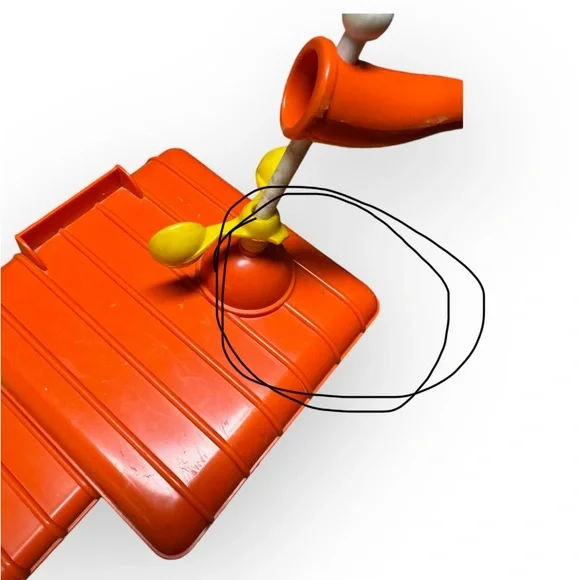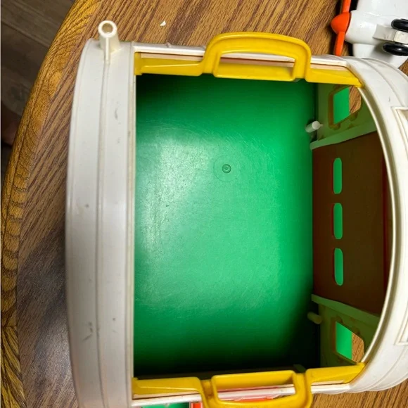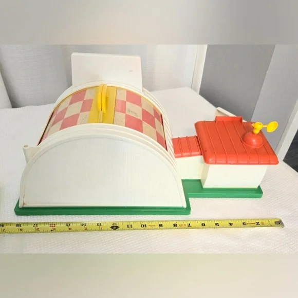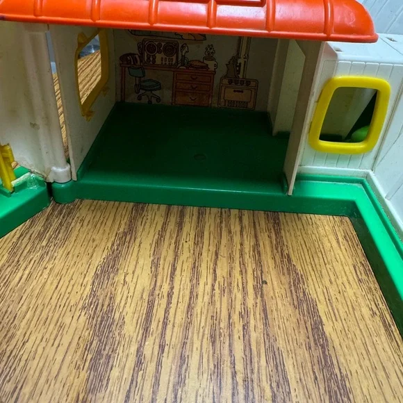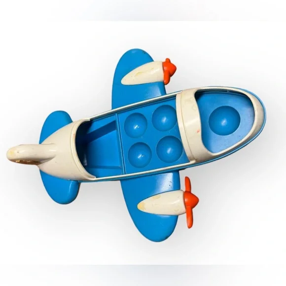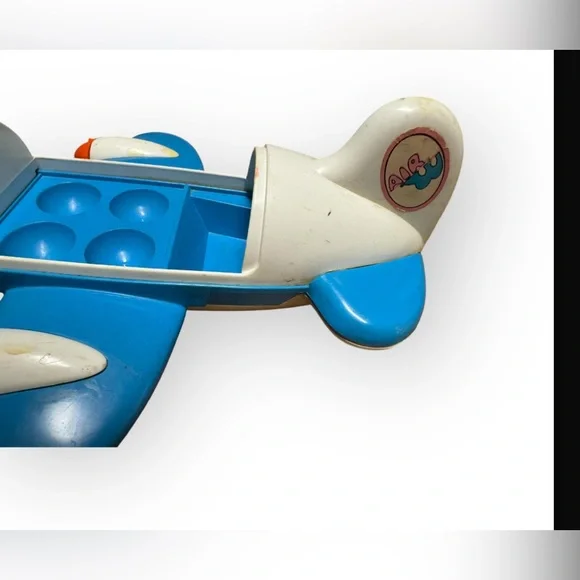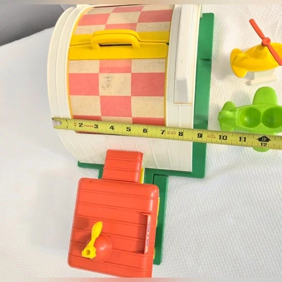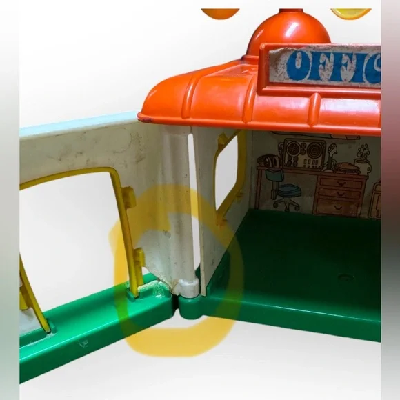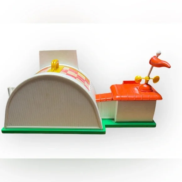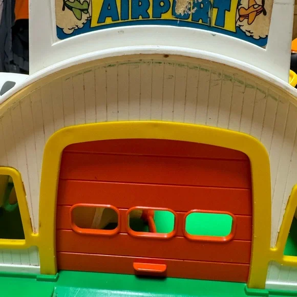Vintage 70’s Weebleville Airport Building and office Large plane Small plane Helicopter Includes everything shown…see photosThis toy has been played with for many years, it does have scratches, scuffs, fading stickers, peeling stickers, one piece is broken off of the wind monitoring, and a chip on the lower left side of the office door. Last two photos show the broken piecesA must have for a collector