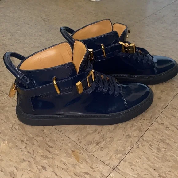 Blue Buscemi Patent Leather High Top Trainers