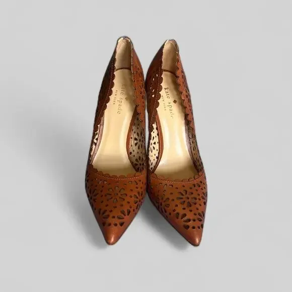 Kate Spade “LANA” Light Camel /Soft Vacchetta Pump HeelsStunning perforated vacchetta leather pump in camel. Made in Italy. Leather upper, lining and soleToe shape: pointyBrand: Kate SpadeColor: Brown/TanSize: 6.5Measurements:- heel 4 inFabric: LeatherCondition: Excellent