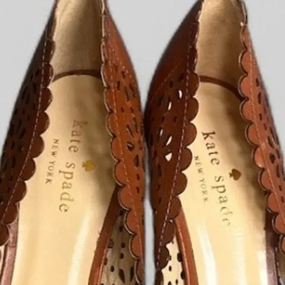 Kate Spade “LANA” Light Camel /Soft Vacchetta Pump HeelsStunning perforated vacchetta leather pump in camel. Made in Italy. Leather upper, lining and soleToe shape:...