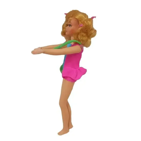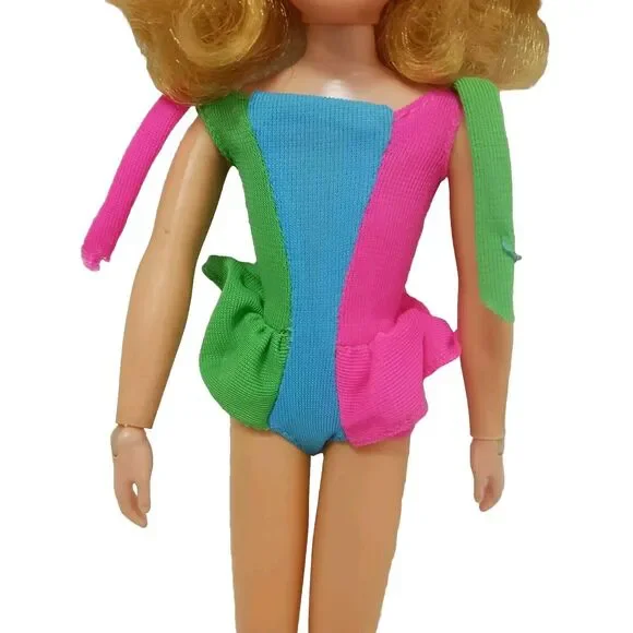 Living Skipper Doll 1969 Mattel Golden Blonde Swimsuit Beautiful HAIR ponytails Rooted Long EYELASHES Blue EyesThis beautiful Living Barbie doll from 1969 is a must-have for any...