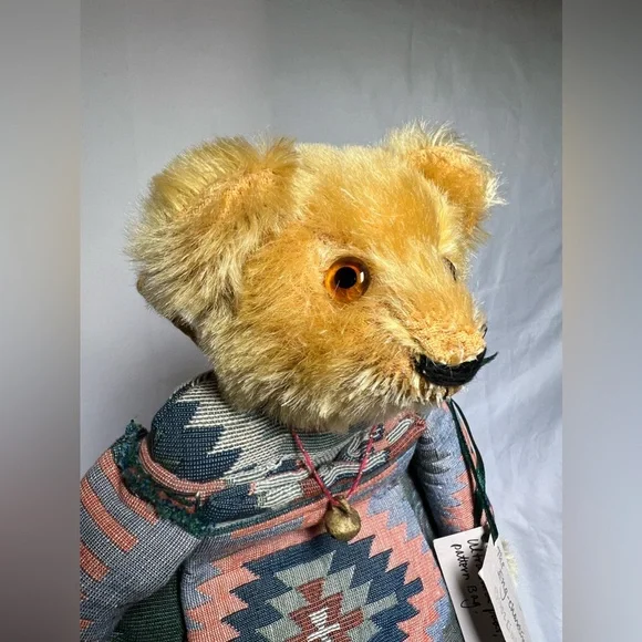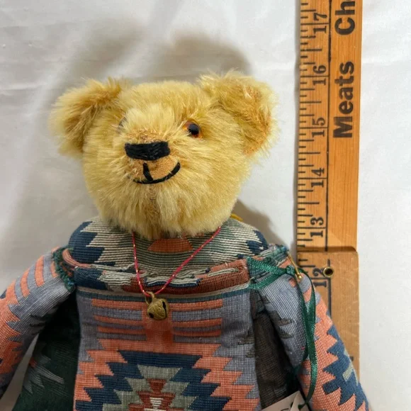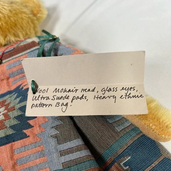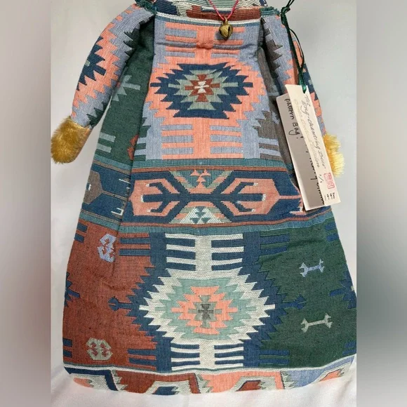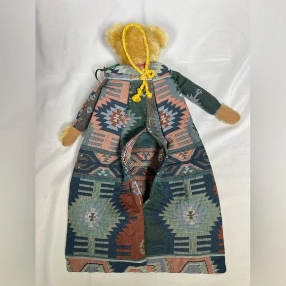 Vintage Eng-Chanting Mohair Stuffed Bear Artisan OOAK Bag South West Tapestry Fabric1 of 1 OOAK Design - Won’t find another identical bear ever! Limited edition - 1998DESCRIPTION ON TAG: Wool Mohair Head, Glass Eyes, Ultra Suede Pads, Heavy Ethnic Pattern BagMultiple Uses: • Hot Water Bottle Holder• Bag • Wall Decoration• Display Piece • & MOREMEASUREMENTS: 16” H x 9.5” LCONDITION: • In as found vintage condition. • Purchased from the estate of an avid adult vintage mohair bear collector. Was displayed in a glass cabinet all of its life. • There is some mohair loss present on snout primarily- I think it just adds to the bears charm!• No odor, no stains or damage & smoke free home. • Please see pictures for more details.