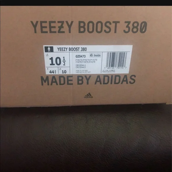 Adidas Yeezy Boost 380 brand new, never worn. Bought them for son but 1/2 size too small for him. Pyrite (tan/cream) comes with extra laces and in original box