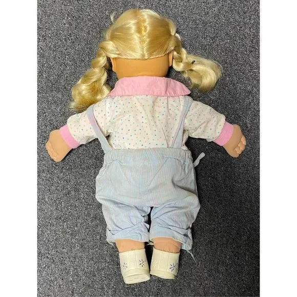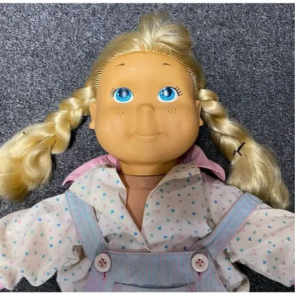 Vintage 1986 playskool hasbro. My buddy Kid Sister doll. Has full outfit and shoes. Cpl spots on overallsHaven’t tried to remove otherwise doll is in excellent condition