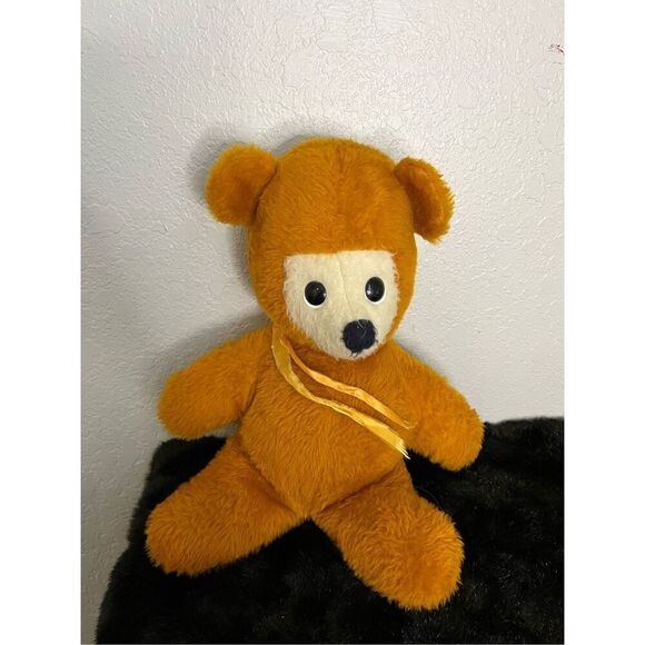 Vintage Teddy Bear Plush Orange Blue Nose White Face Animal Fair Stuffed Animal