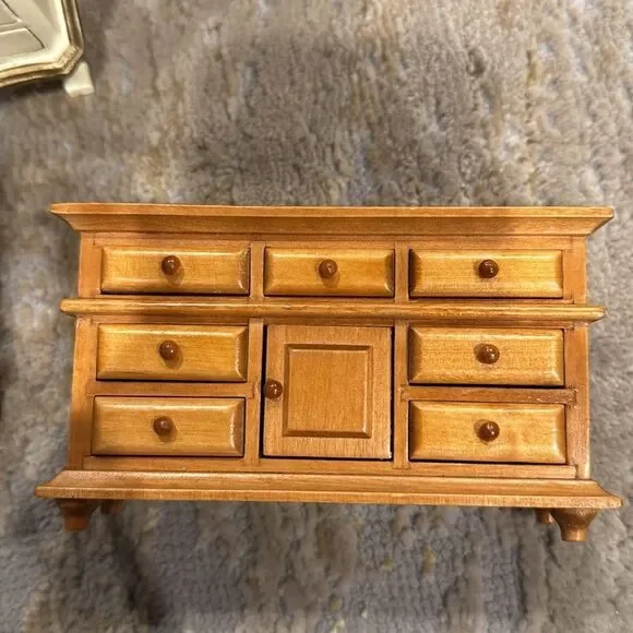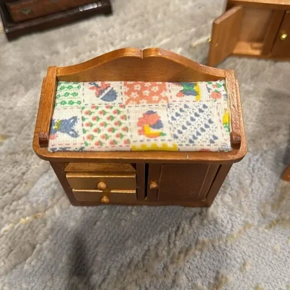 VTG lot of dool housefurniture wood pieces in GUC 10 pieces real wood one is missing small nails in the hinge