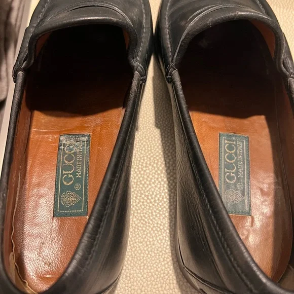 Black leather loafers classic style used lightly fits USSize 8 all original no blemishes original soles