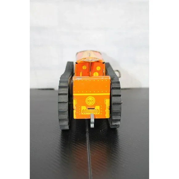 A working antique Marx wind-up toy with rubber tracks, made from tin. A nostalgic piece perfect for collectors or as a unique home decor item.• Antique wind-up toy• Features...