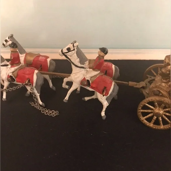 Lesney 1950’s Queen Elizabeth Coronation Coach Carriage Horses and riders.Nice vintage condition. Minor issues. Chains detached from horses to carriage. Easy fix. Carriage top...