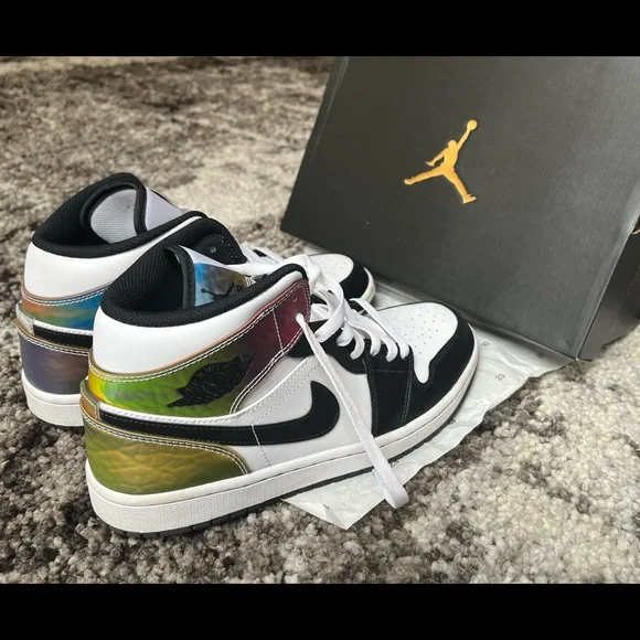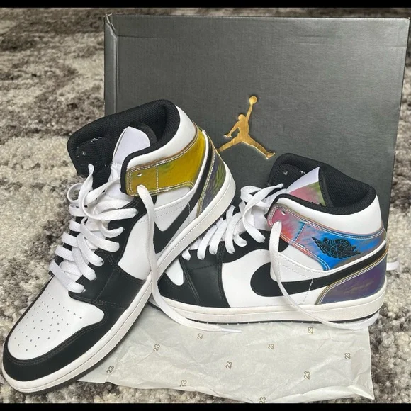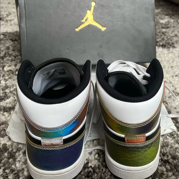 AJ1 shoes that have a unique color changing iridescence. These shoes have been worn twice and have crease protectors. There is no obvious dirt or damage on either shoe and they...